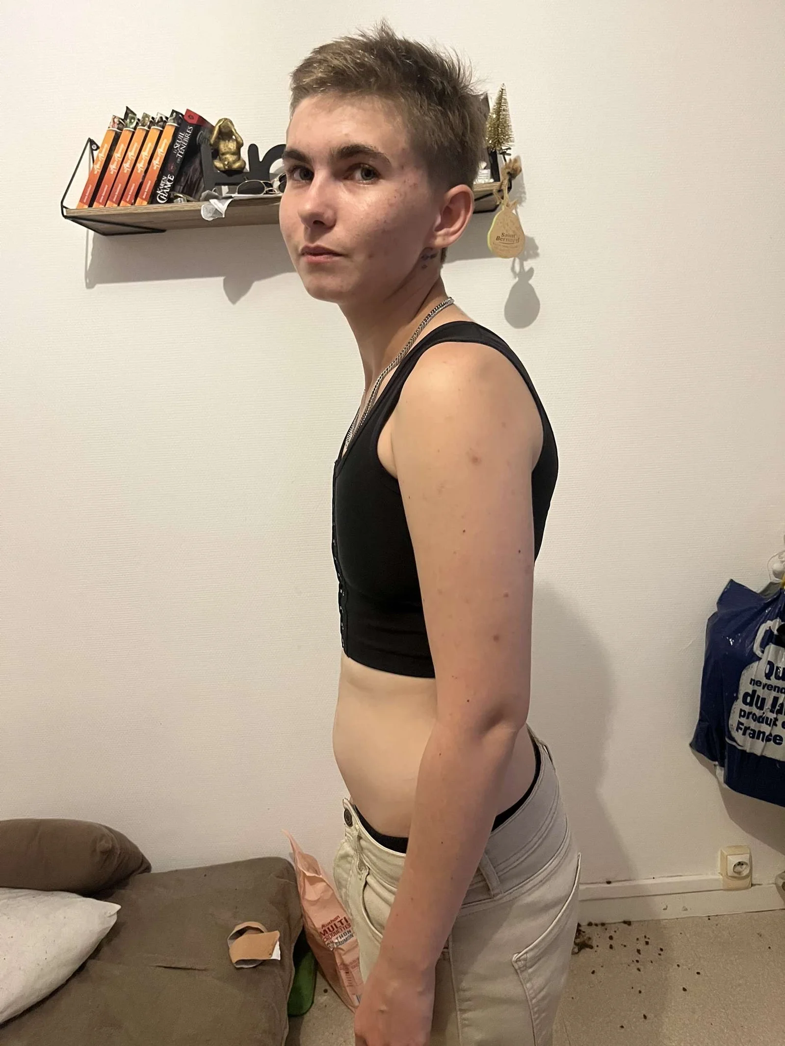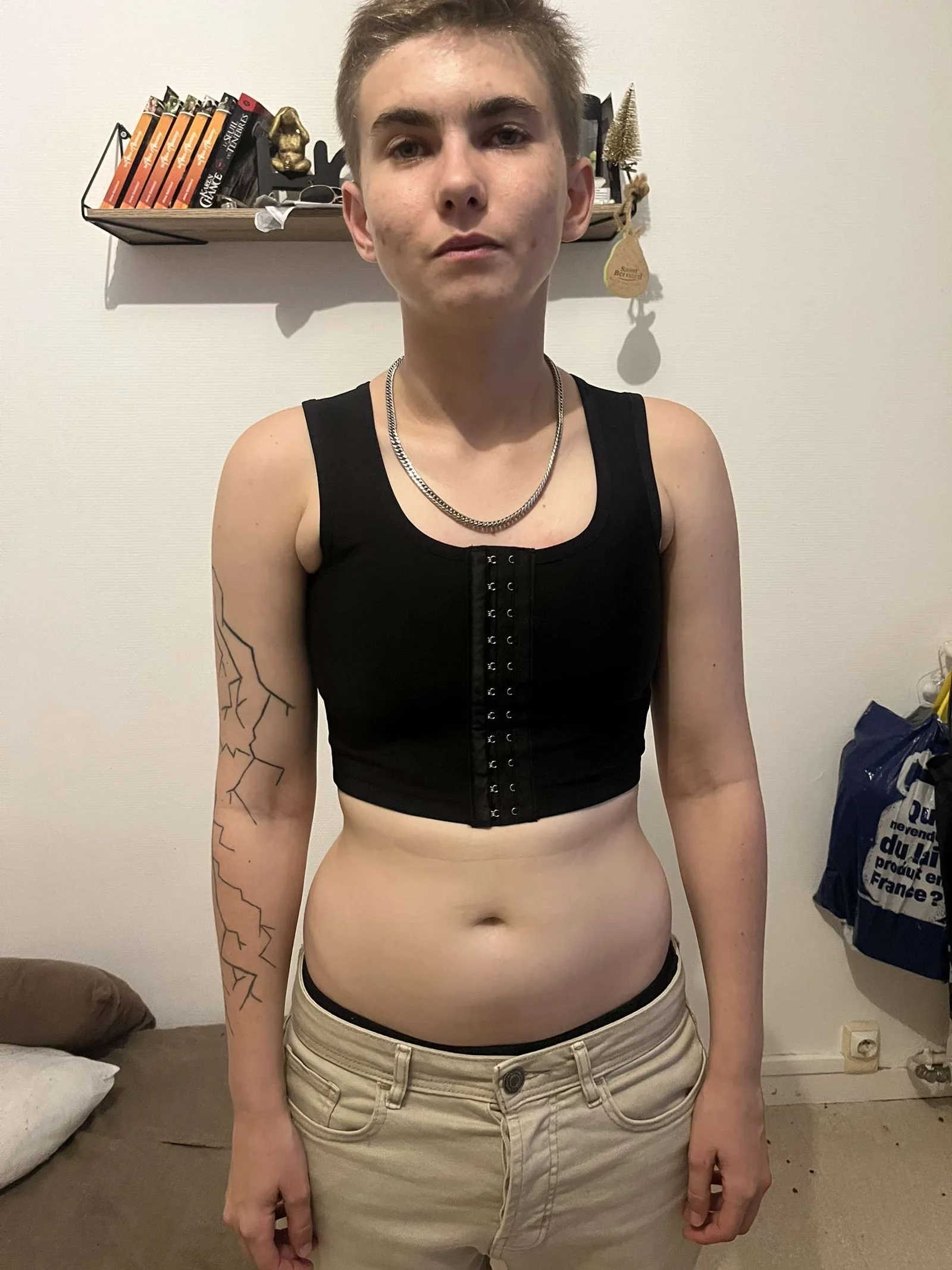 Un binder est un vêtement conçu pour aplatier ta poitrine de manière sécuritaire. À mi-chemin entre le crop-top et le débardeur, il t’aide à affirmer ton apparence pour un meilleur confort au quotidien. C’est un outil d’affirmation de soi, conçu pour ton bien-être.
